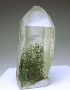 A kristályon belül ásványlerakat, amely rendszerint zavaros foltként vagy szellem alakként jelenik meg a kristály színétől függően. Lásd tibeti kvarc.